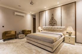 Modern bedrooms are characterised by neutral tones of grey white and black all serving as simple base colours. Morph design company this modern bedroom decor features an abundance of copper tones found on wall behind the bed.