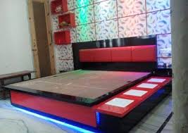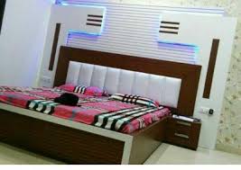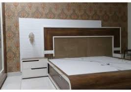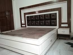 Malayasian wood made double bed size 5 feet by 7 feet semi box design very attractive design suitable for any bed room 10 years warranty. The main design pattern consists of solid wood with a long and lengthy headboard and smaller footboard. When you are not in a mood to sleep you can lean back on this board and relax.