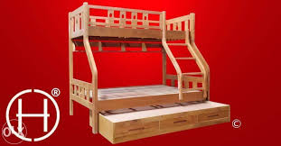 Bunk bed makes use of the vertical space and the trundle bed slides below the regular bed providing extra sleeping space whenever needed. Rated 5 00 out of 5. Nobu wooden post bed frame.
