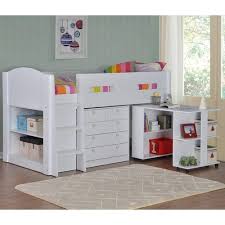 The canwood skyway twin loft bed boasts plenty of storage for your child with an incredibly stylish design. The under bed area holds bookcases and storage drawers to give maximum storage in a small room making the best use of small areas. Abigail twin loft bed with desk and storage gives your child a fun place to play work sleep and dream.