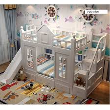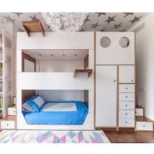 This sleek curvy white bunk bed features an abundance of storage options with top bunk bookshelf and extra shelving above the desk mounted at right. Maxtrix bunk beds with slide. They will be inspired to play for hours running up the stairs and sliding down.