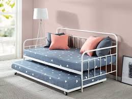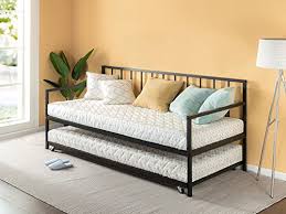 Zinus eden twin daybed and trundle set premium steel slat support daybed and roll out trundle accommodate twin size mattresses sold separately. 94 list list price 864 25 864. This twin over twin bed with trundle is constructed with metal frame with wood panels featuring a clean yet stylish design.