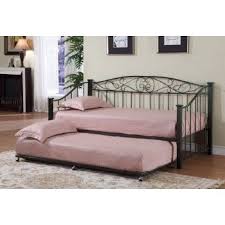 The included roll out trundle features four casters that easily glide in and out as a space saving extra bed. Giantex twin size daybed and trundle frame set trundle bed with 4 casters premium metal slat support easy assembly mattress platform bed sofa for living room guest room children room 4 4 out of 5 stars 202. Metal twin bed with trundle twin bed frame with trundle searsfashion bed group b doral plete metal daybed with link spring trundle bed pop up frame matte black finish twin 5 0 2 sold by unbeatablesale incamazon black metal trundle bedsteel bunk bed twin over twin julyfox modern metal steel bed frame 550 lb heavy duty w stairs side guard rails 10 8 inch storage no box spring needed 2 twin.